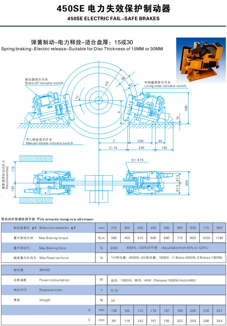 制動器,盤式制動器,電磁失效盤式制動器,電磁保護制動器,電磁失效保護制動器,450SE,450SE電磁失效保護制動器,制動器廠家