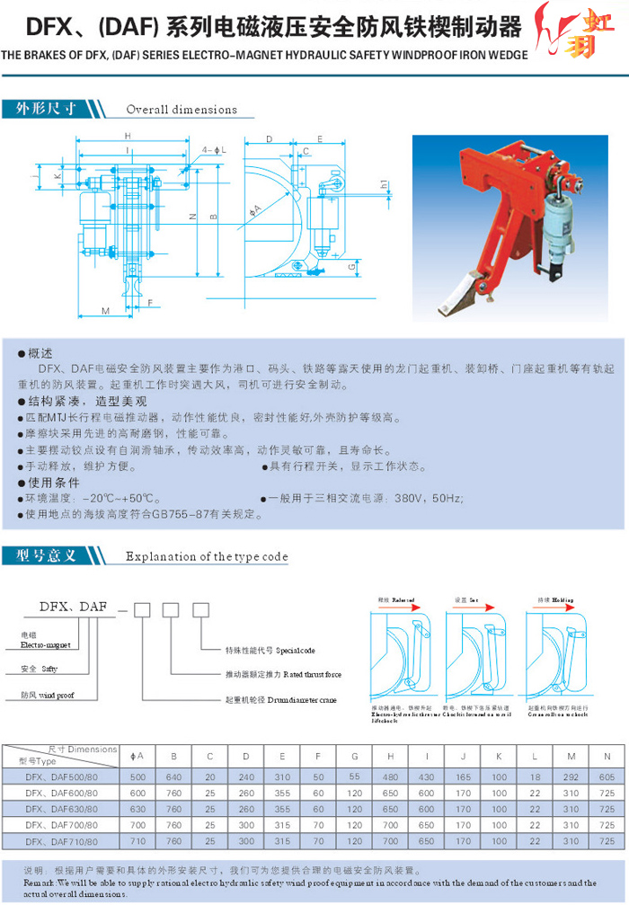 制動器,防風(fēng)制動器,安全制動器,安全防風(fēng)制動器,DFX(DAF)防風(fēng)制動器,DFX(DAF)電磁液壓安全防風(fēng)鐵楔制動器