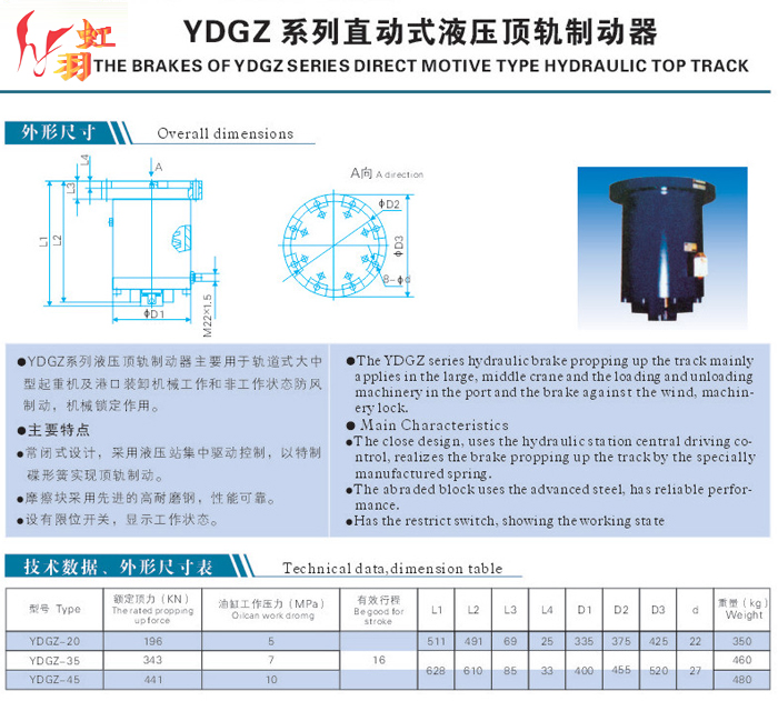 YDGZ直動式液壓頂軌制動器,YDGZ,安全防風(fēng)制動器系列,制動器