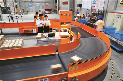 廣州海關所屬南沙海關關員在南沙保稅港區(qū)的跨境電商倉庫巡倉監(jiān)管。