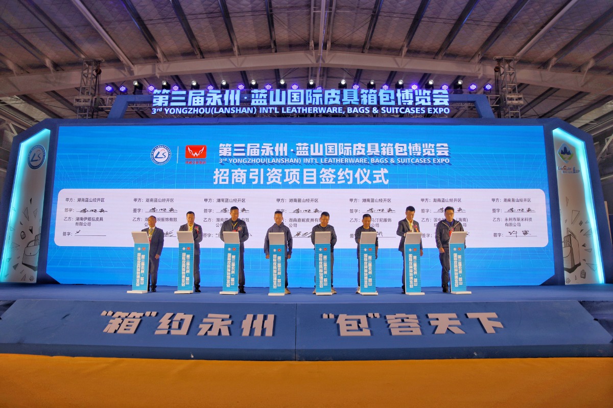 3月24日上午,第三屆永州·藍山國際皮具箱包博覽會在湖南省永州市藍山縣皮具箱包科技產(chǎn)業(yè)園創(chuàng)品國際智慧物流園拉開帷幕。本屆博覽會以“‘箱’約永州、‘包’容天下”為主題,現(xiàn)場簽約招商引資項目14個,總投資金額13億元,現(xiàn)場簽訂外貿(mào)訂單8單,簽約金額3.5億元人民幣。