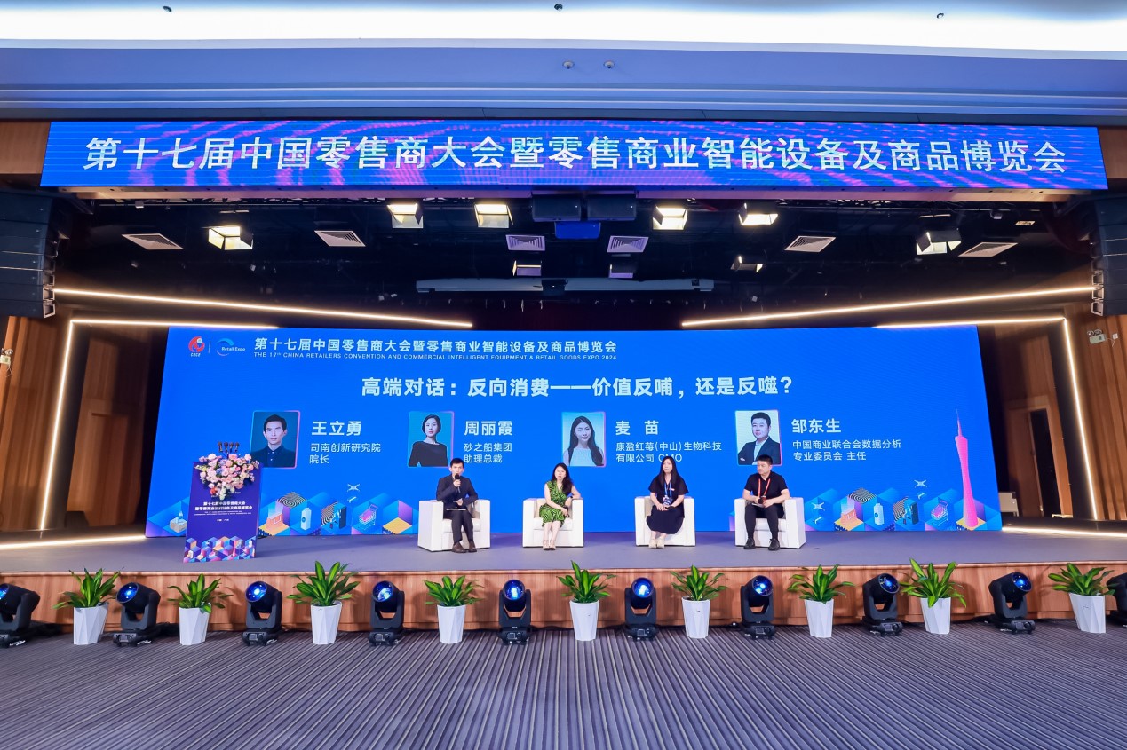 在高端對話環(huán)節(jié),司南創(chuàng)新研究院院長王立勇、砂之船集團(tuán)助理總裁兼分公司總經(jīng)理周麗霞、康盈紅莓(中山)生物科技有限公司CMO麥苗、中國商業(yè)聯(lián)合會數(shù)據(jù)分析專業(yè)委員會主任鄒東生就“反向消費-價值反哺,還是反噬?”這一話題進(jìn)行了深入討論,為與會者提供了獨特的視角和思考。